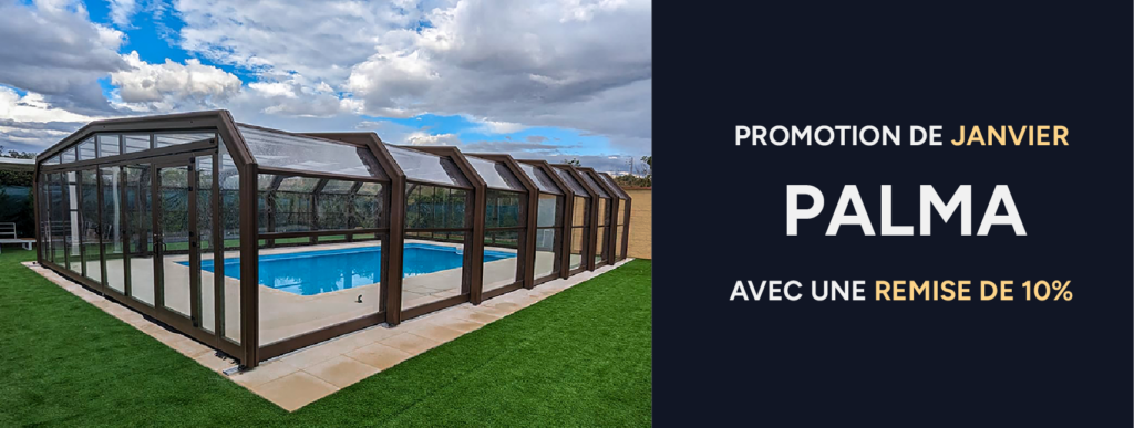 Chez Abrisol, nous nous engageons à vous aider à protéger votre piscine. C’est pourquoi, pendant ce mois, nous vous proposons une remise exceptionnelle afin que le mois de janvier soit moins difficile. Du 1er au 31 janvier, vous vous pouvez acquérir notre abri de piscine, modèle Palma, avec une remise de 10%.